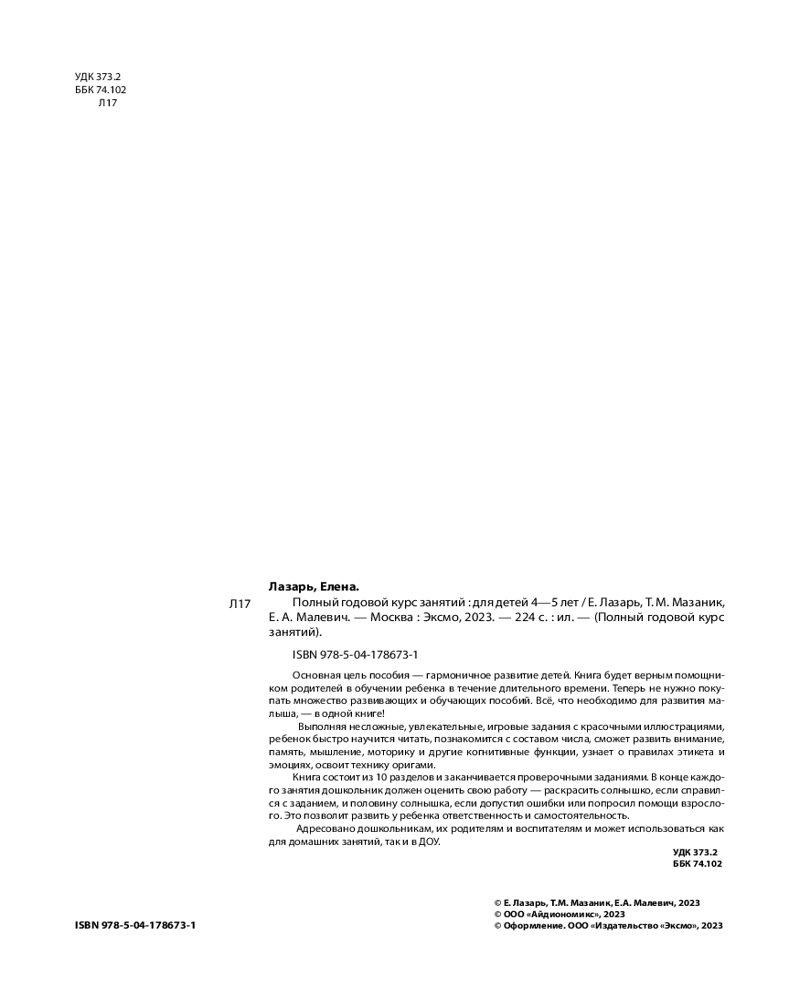 Полный годовой курс занятий: для детей 4-5 летТаисия Михайловна Мазаник, Елизавета Андреевна Малевич, Елена Лазарь +216