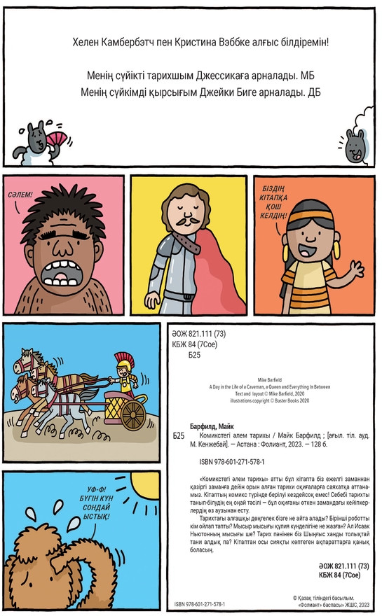 💳 Оплатить за товар можно при получении 🇰🇿 Есть бесплатная доставка по Казахстану от 1 дня 🎁 Копите бонусы с каждой покупки Серия: Комиксы «Комикстегі әлем тарихы» атты бұл кітапта біз ежелгі заманнан қазіргі заманға дейін орын алған тарихи оқиғаларға саяхатқа аттанамыз. Кітаптың комикс түрінде берілуі кездейсоқ емес! Себебі тарихты танып-білудің ең оңай тәсілі — бұл оқиғаны өткен замандағы кейіпкерлердің өз аузынан есту. |