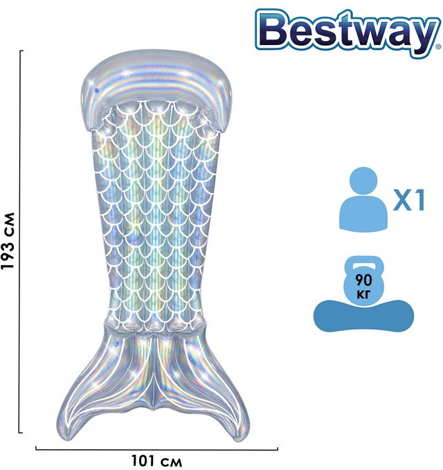 Bestway Матрас для плавания «Хвост русалки»В данный момент этот товар отсутствует в продаже. Возможно, у нас найдется аналогичный или похожий товар здесь. Придайте больше блеска вашей следующей вечеринке у бассейна! Благодаря блестящему светящемуся материалу и уникальному дизайну хвоста русалки вам понравится, как этот уникальный плотик пробуждает ваше воображение и творческие способности. Наслаждайтесь мерцающими цветами, плавая и отдыхая в течение дня в бассейне или на озере. Специально разработанный материал улавливает солнечный свет, благодаря чему вы сияете и чувствуете себя как русалка. Гламурный, достойный социальных сетей, и при этом идеального размера – здесь достаточно места, чтобы улечься и расслабиться. Привлеките всеобщее внимание и удивите всех игрой цвета этим летом с шезлонгом «Переливчатый хвост русалки»! |