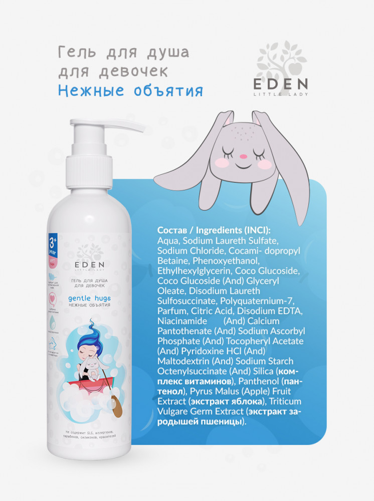 Eden cosmetics Гель для душа для девочек «Нежные объятия»В данный момент этот товар отсутствует в продаже. Возможно, у нас найдется аналогичный или похожий товар здесь. Серия: little lady Гель для душа для девочек бережно очищает, увлажняет и оздаравливает кожу, насыщая ее необходимыми витаминами. Комплекс BeauPlex VH, состоящий из витаминов Е, В3, В6, В5 и С, обладает восстанавливающими, питательными свойствами. |