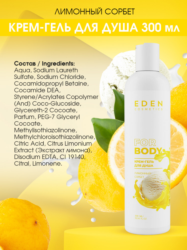 Eden cosmetics Крем-гель для душа «Лимонный сорбет»