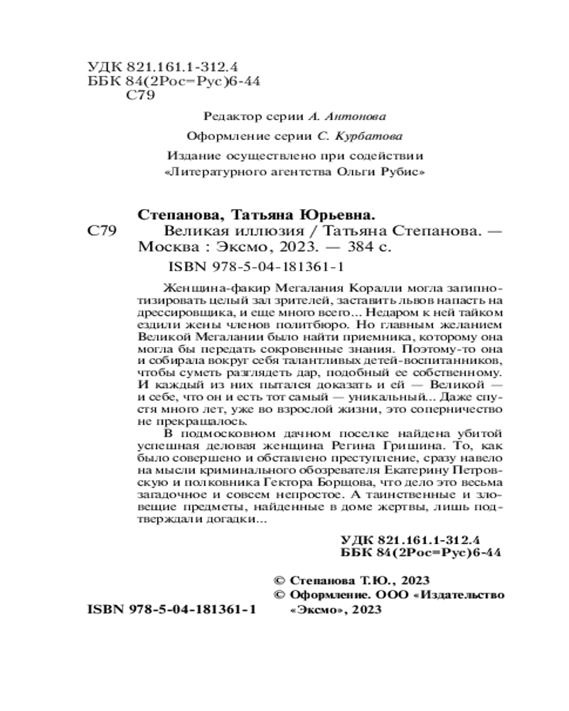 | Великая иллюзия Татьяна Юрьевна Степанова