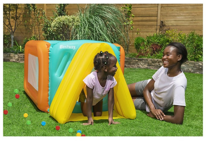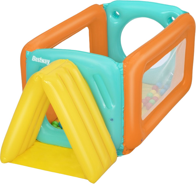 Манеж с мячиками легко надуть и сразу же приступить к игре. По завершении игр эту игрушку легко сдуть и сложить до компактного размера для удобного хранения.