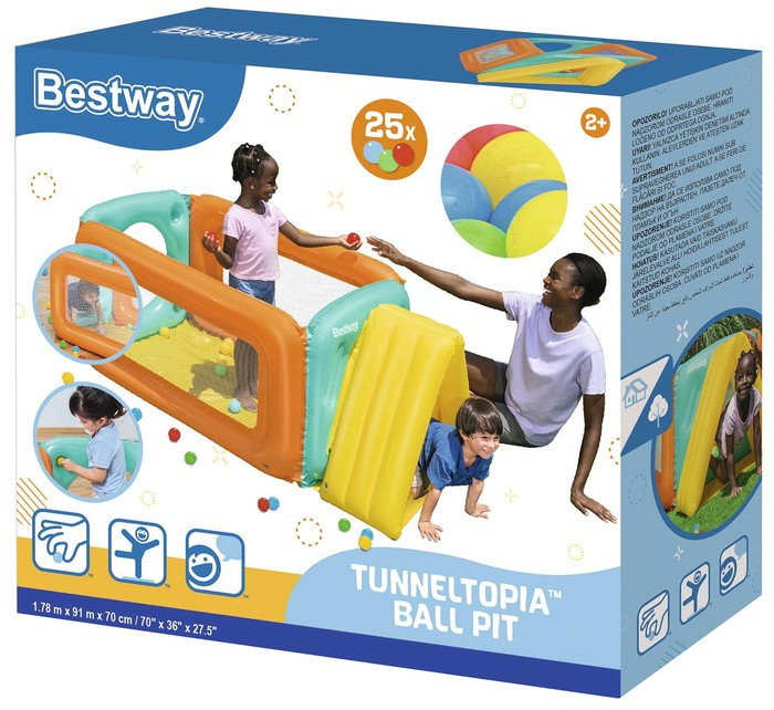 Надувной манеж с мячиками также стимулирует развитие мелкой моторики и зрительно-моторной координации детей, пока они резвятся. По мере того, как дети продвигаются вперед и подбирают 25 входящих в комплект мячиков, они развивают свои осязательные навыки, которые помогут им ориентироваться в мире по мере взросления!