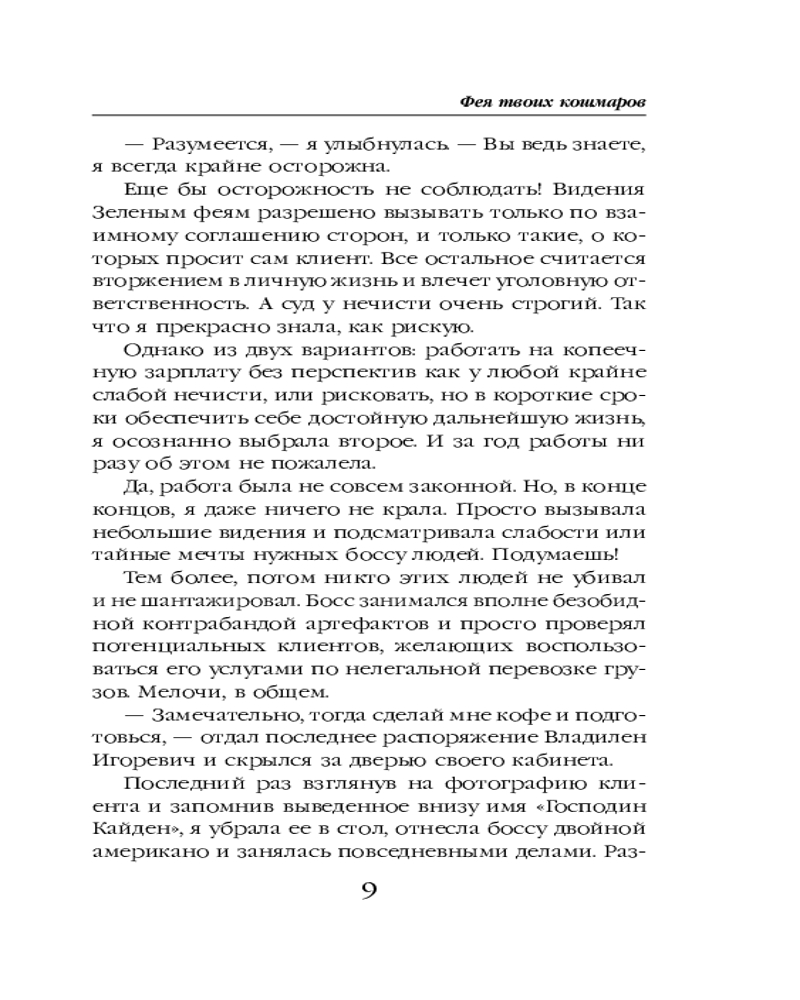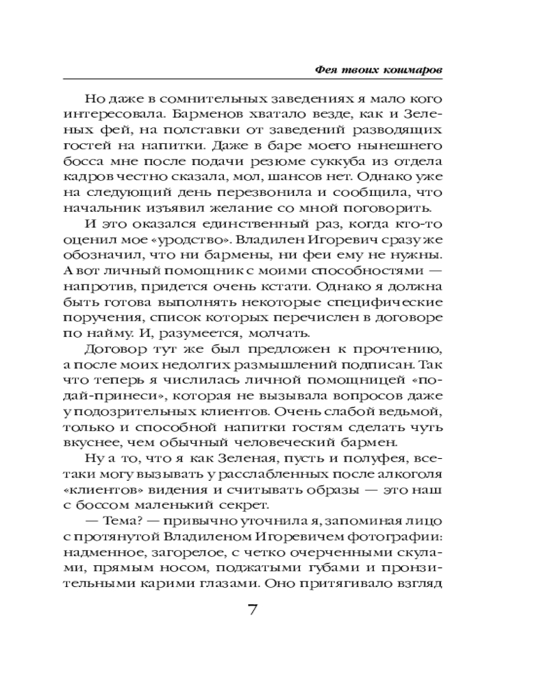 💳 Оплатить за товар можно при получении 🇰🇿 Есть бесплатная доставка по Казахстану 🎁 Копите бонусы с каждой покупки Серия: Колдовские миры. Новое оформление Как полукровке Зеленой феи без особых талантов заработать на безбедную жизнь? Если использовать свою магию не совсем законным образом — легко! Всего-то и нужно принять предложение шефа и, опоив подозрительного клиента, заглянуть в его мысли. Тем более, если клиент красив, притягателен и сам предлагает пойти на свидание. |