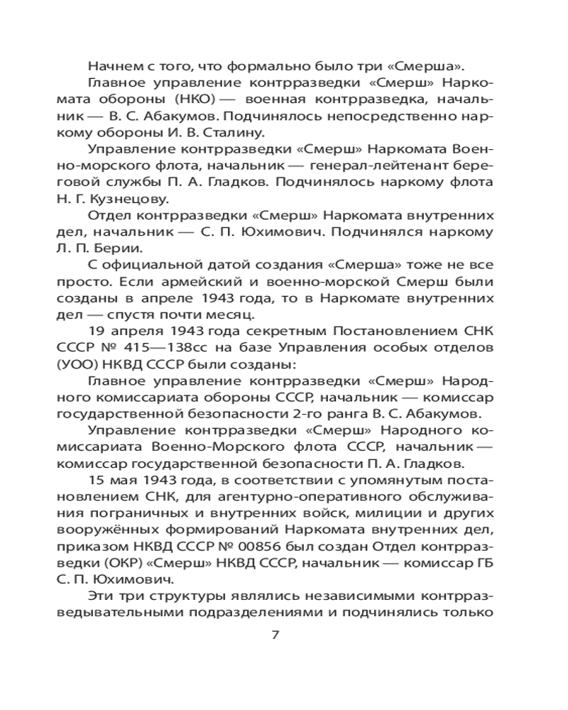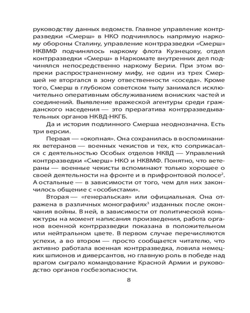 💳 Оплатить за товар можно при получении 🇰🇿 Есть бесплатная доставка по Казахстану от 1 дня 🎁 Копите бонусы с каждой покупки Серия: СМЕРШ. Легенды контрразведки Восемьдесят лет назад, в апреле 1943 года, в Наркоматах обороны (НКО), ВМФ и внутренних дел (НКВД) были сформированы структуры контрразведки «Смерш». Несмотря на то что в мае 1946 года они прекратили свою деятельность, за три года они стали самой эффективной спецслужбой периода Второй мировой войны. Основная причина этого — уже в июне-июле 1941 года военные чекисты — сотрудники Особых отделов (предшественник Смерша) демонстрировали высокий уровень профессионализма успешно нейтрализуя разведчиков и диверсантов противника. Поэтому историю легендарного Смерша следует начинать с июня 1941 года, а не с апреля 1943 года. |