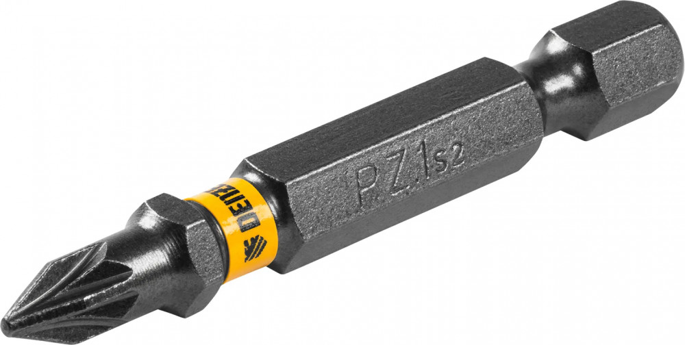 • защита от подделок — цветное кольцо с логотипом ТМ Denzel на каждой бите подтверждает оригинальность товара;