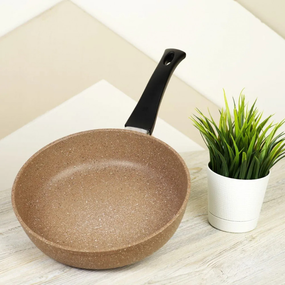 • толстые стенки и широкий борт сковород серии AURA способствует равномерному распределению тепла и обеспечивает высочайшую прочность изделий;