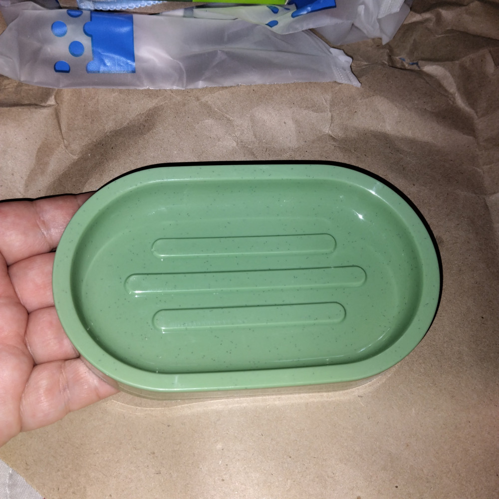Нормальная пластиковая мыльница, без отверстий для слива лишней воды. Звезду сняла за то, что цвет с фото на сайте немного не совпадает, хотя по фото кажется практически такой же, но в реальности темнее намного