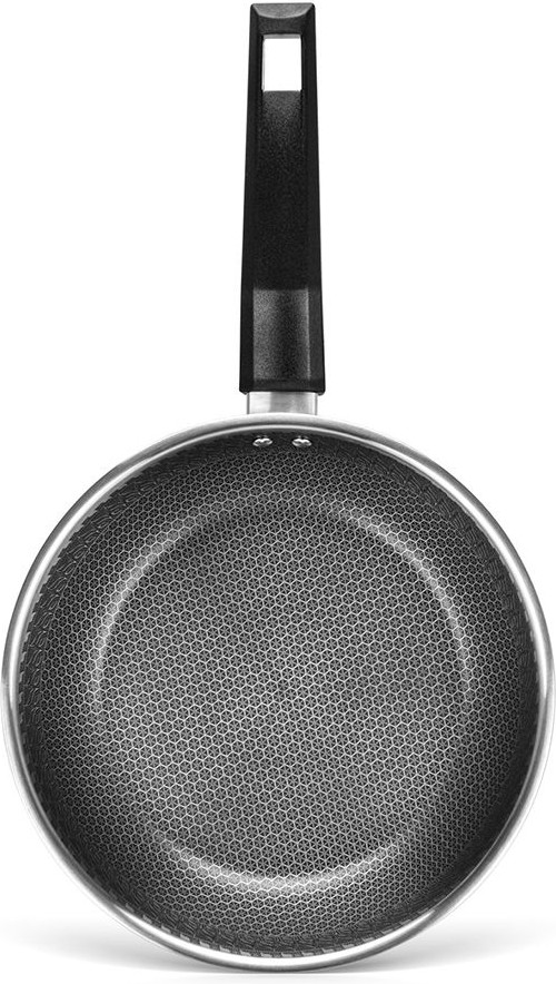 • уникальная рельефная внутренняя поверхность дна в виде сот позволяет готовить полезные для здоровья, а также диетические блюда с малым количеством масла, обеспечивая его равномерное распределение и тем самым защищая пищу от подгорания и перегрева;