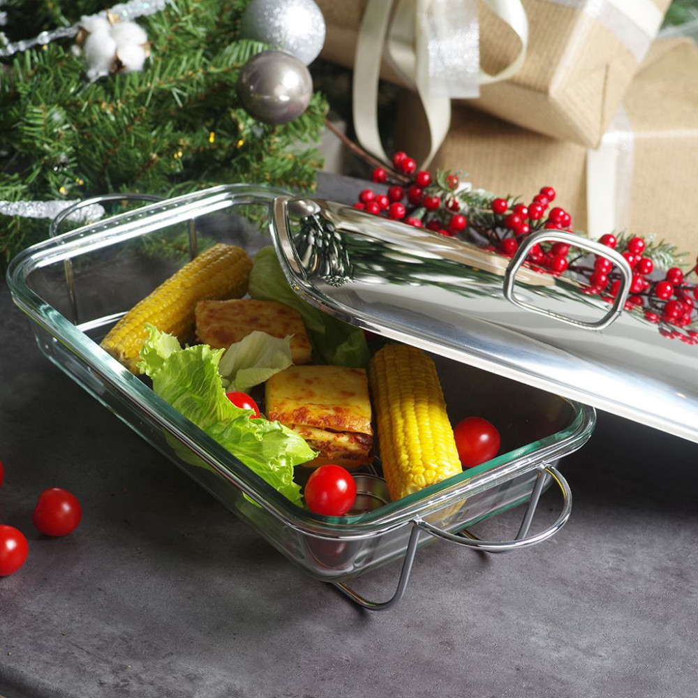 Fissman Мармит прямоугольныйВ данный момент этот товар отсутствует в продаже. Возможно, у нас найдется аналогичный или похожий товар здесь. Прямоугольный мармит изготовлен из жаропрочного стекла. Мармит для подачи вторых блюд оснащен металлической подставкой с подсвечниками. Стеклянная емкость подогревается от пламени свечи и надолго удерживает тепло. Блюдо можно сразу подавать на стол, не перекладывая в сервировочные тарелки. Стеклянную емкость можно использовать в духовом шкафу или микроволновой печи. |