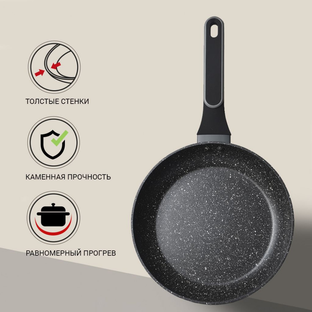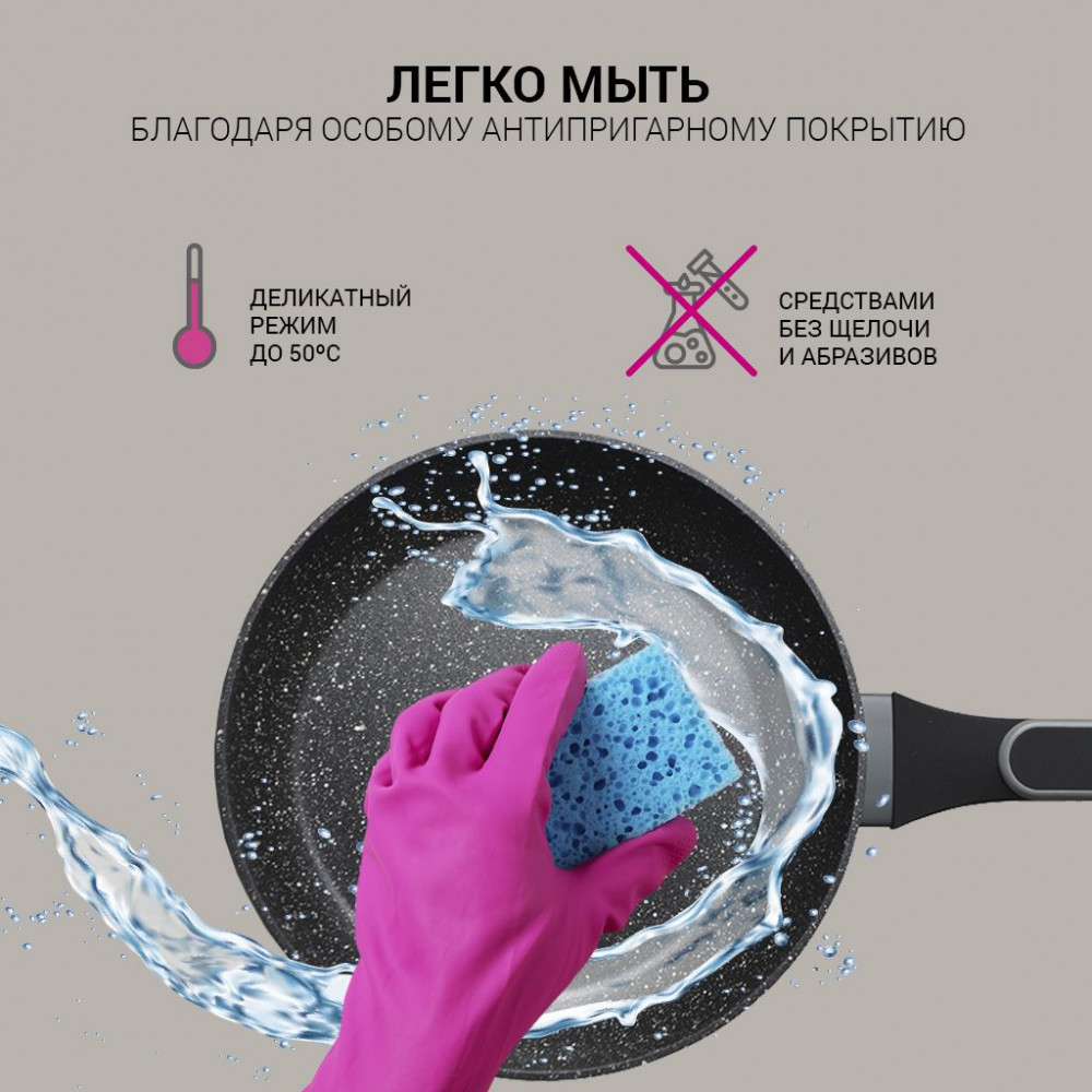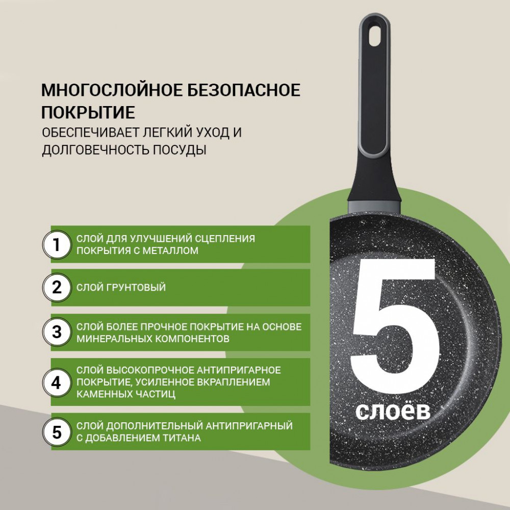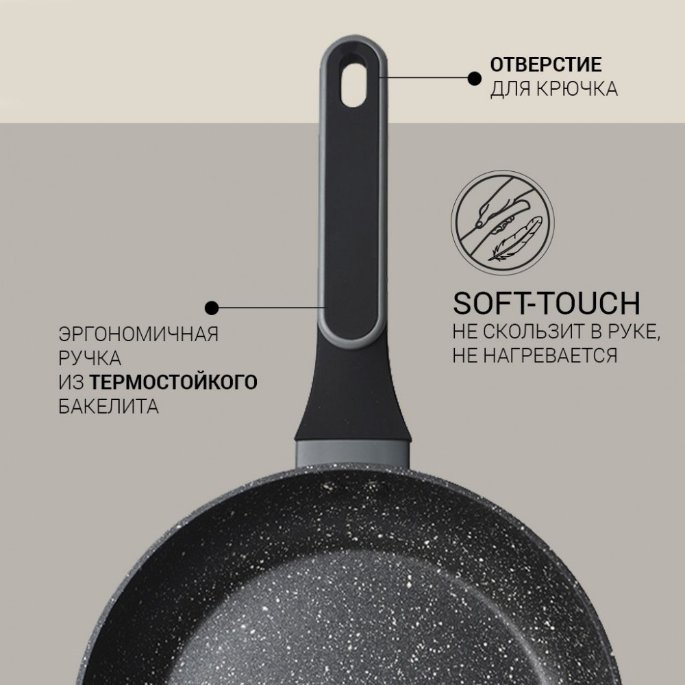 • Бакелитовые ручки с soft-touch покрытием удобны в использовании, приятны на ощупь, не скользят, не нагреваются.