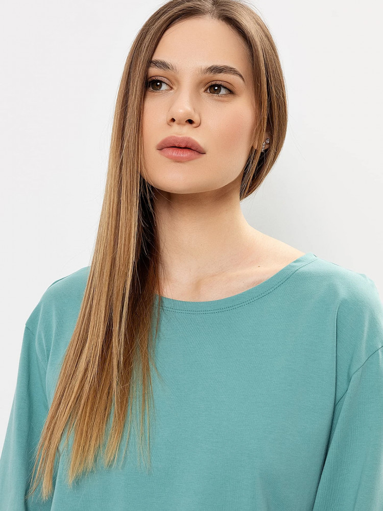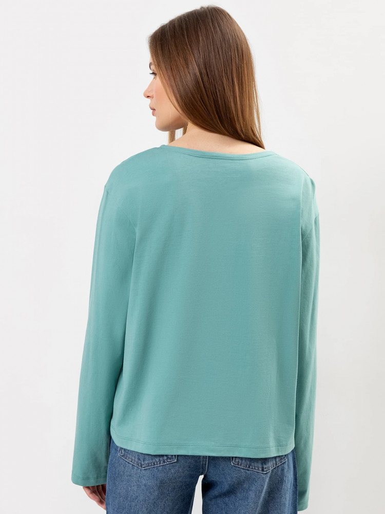 Лонгслив пришёл серо-бирюзового цвета ,как-будто застиранный и поношенный. Цвет не соответствует фото , в люди не наденешь , только если дома носить