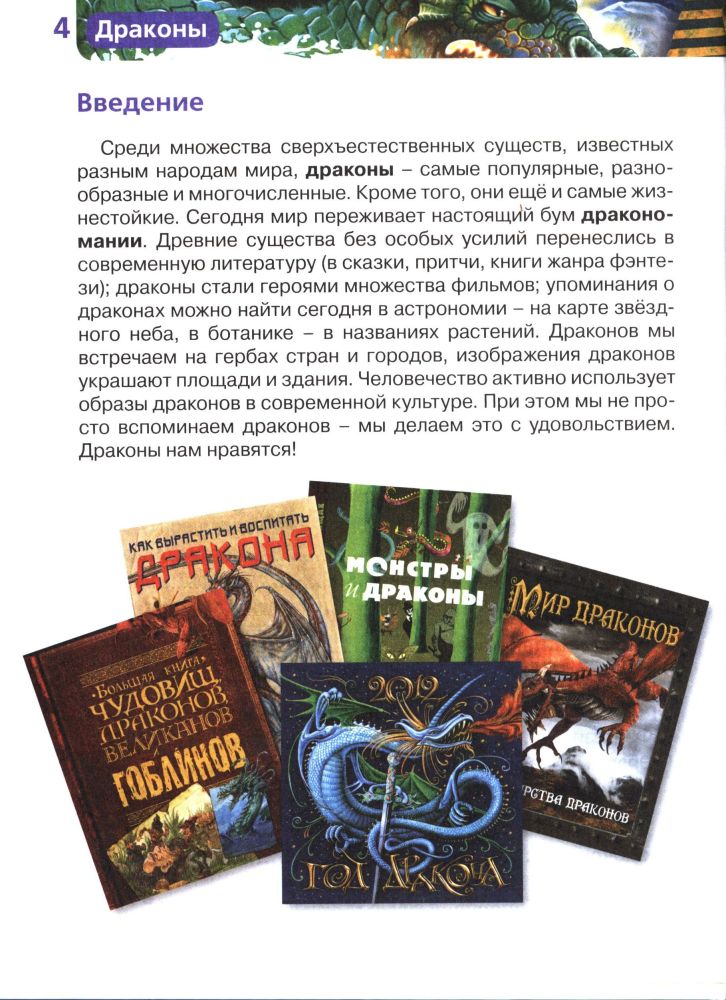 ДраконыВ данный момент этот товар отсутствует в продаже. Возможно, у нас найдется аналогичный или похожий товар здесь. Серия: Детская энциклопедия Росмэн Эта книга знакомит юных читателей с удивительным миром драконов — таинственных и неуловимых созданий. На протяжении веков человек стремился понять и укротить драконов. Все знали об их существовании, но лишь немногим довелось столкнуться с ними. Что же на самом деле представляют собой загадочные существа, которых мы называем драконами? Наше издание откроет все секреты их жизни. |