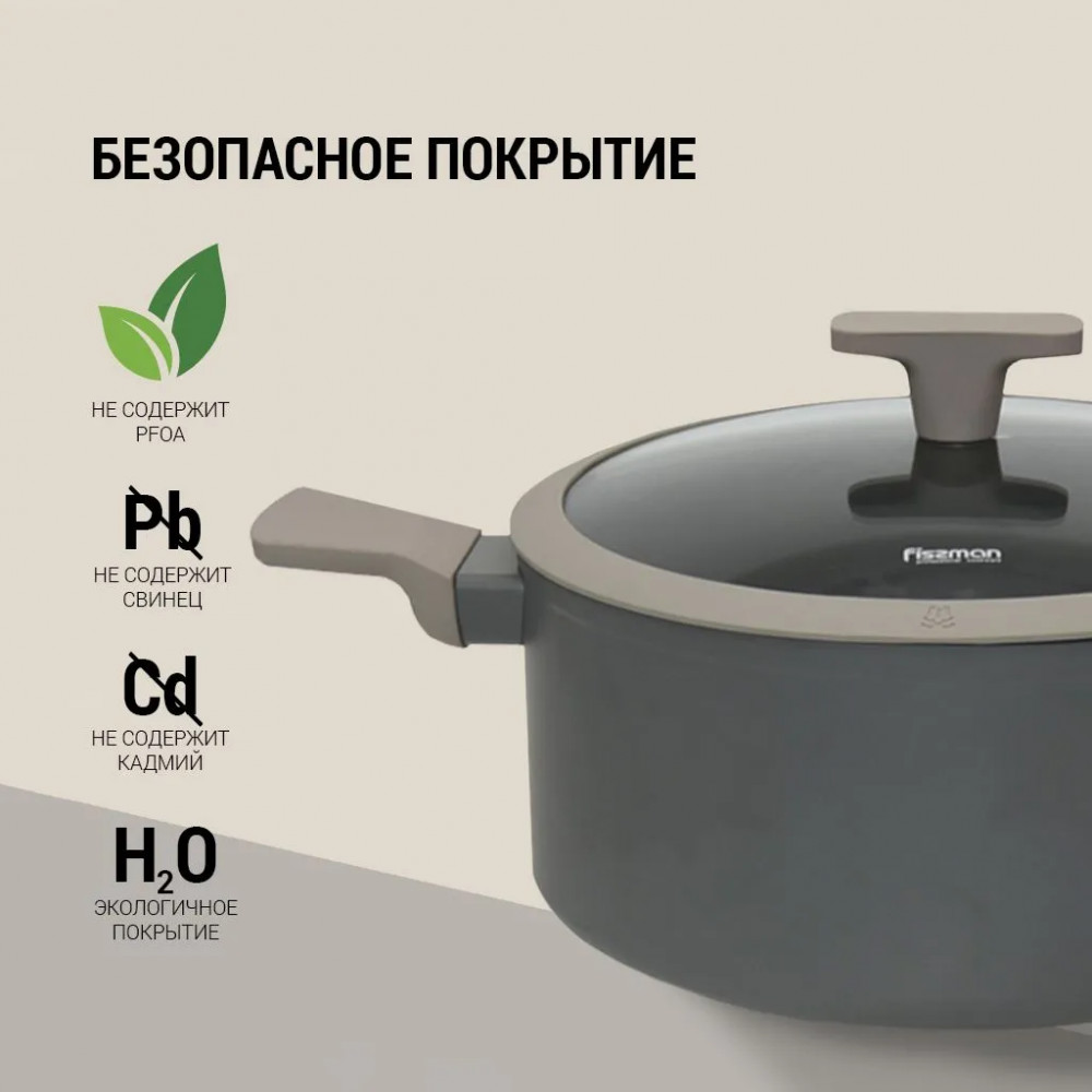 • посуда серии Nikki отвечает международным экологическим стандартам, имеет соответствующие сертификаты безопасности. При производстве посуды компания Fissman не применяет PFOA, токсичные, канцерогенные компоненты;