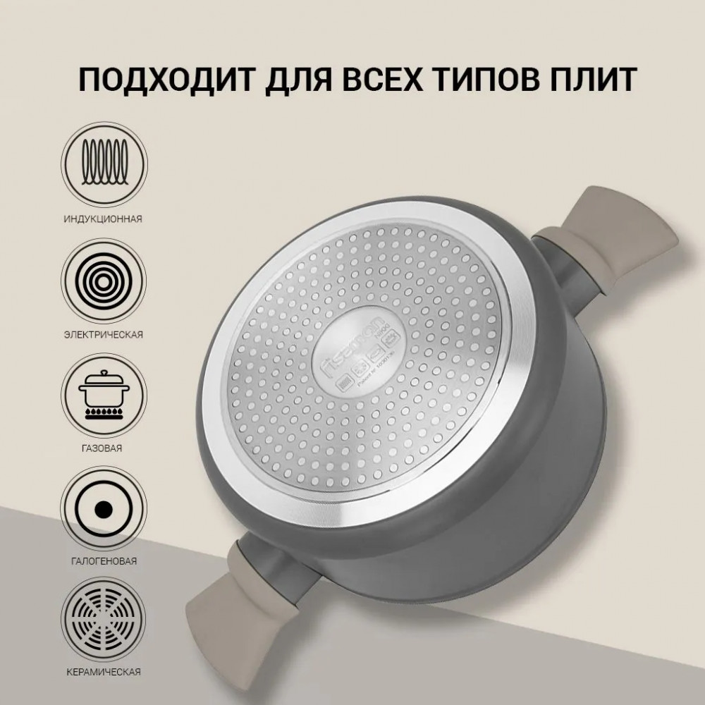 • индукционное дно посуды серии Nikki быстро и равномерно нагревается до нужной температуры. Посуда серии Nikki подходит для всех типов плит.