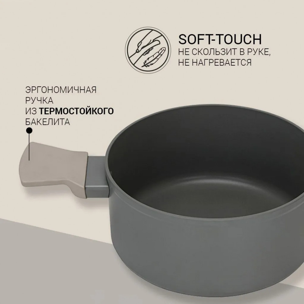 • бакелитовые ручки с soft-touch покрытием удобны в использовании, приятны на ощупь, не скользят, не нагреваются;