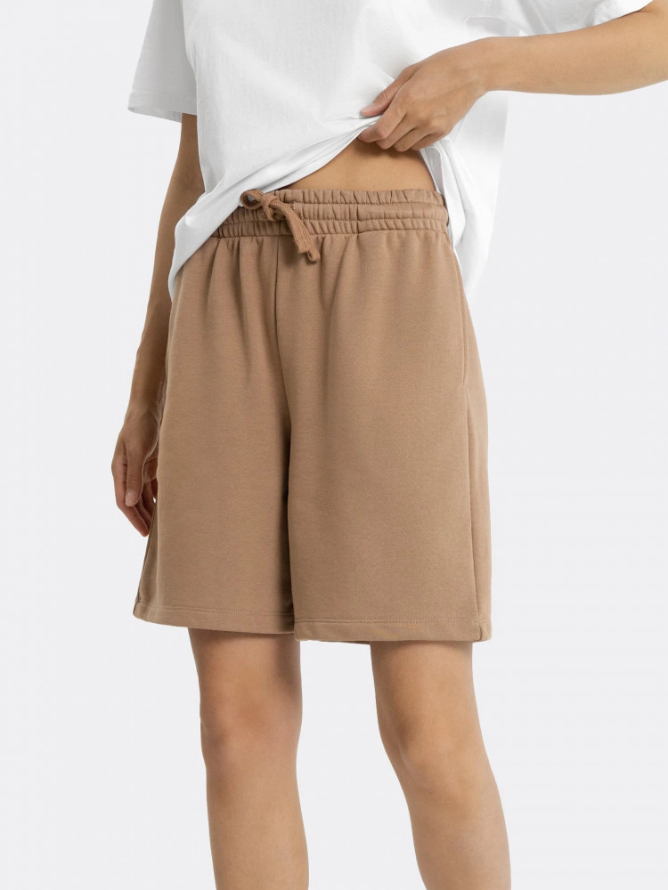 Очень хорошие и качественные шорты, из плотного материала. Красивый цвет, аккуратный пошив. Размер 50 на мой такой же, свободный, по талии можно регулировать шнурком. На рост 160 см. до колен. Удобные шорты, комфортные, с карманами по бокам. Покупкой довольна. Спасибо.
