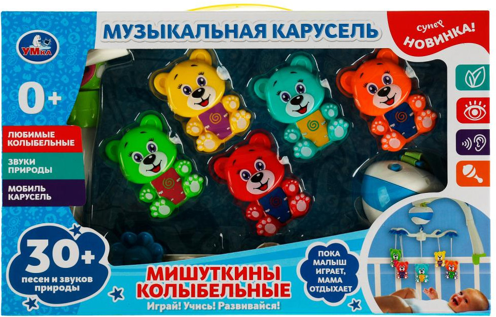 💳 Оплатить за товар можно при получении 🇰🇿 Есть бесплатная доставка по Казахстану от 1 дня 🎁 Копите бонусы с каждой покупки Музыкальная карусель «Мишуткины колыбельных» ТМ «УМка» для сладких снов: |