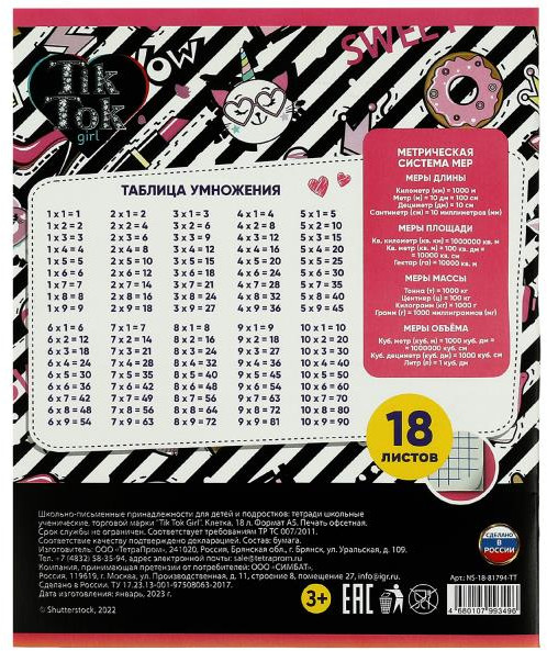 Tik Tok Girl ТетрадьВ данный момент этот товар отсутствует в продаже. Возможно, у нас найдется аналогичный или похожий товар здесь. Тетрадь ТМ «Tik Tok Girl» — стильное решение для учёбы: |