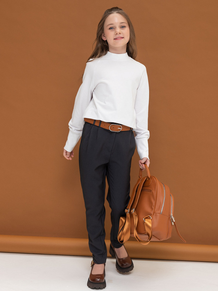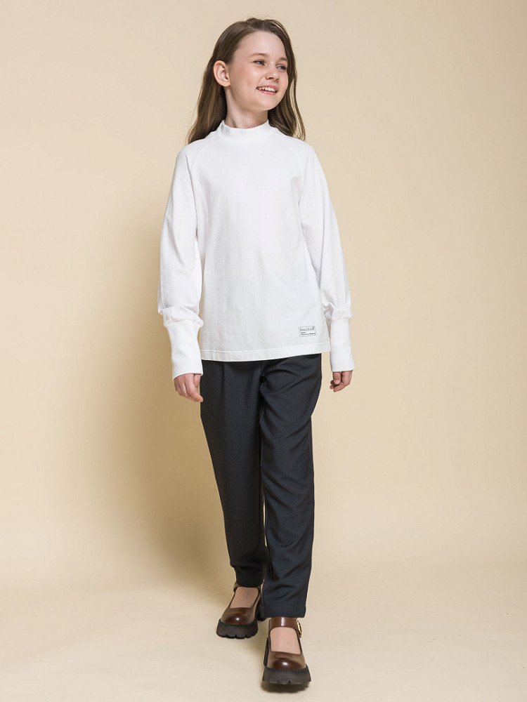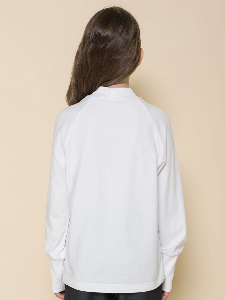 Трикотажная водолазка для девочек. Рукав реглан. Воротник стойка из рибаны без отворота. По низу рукава высокий манжет из рибаны.