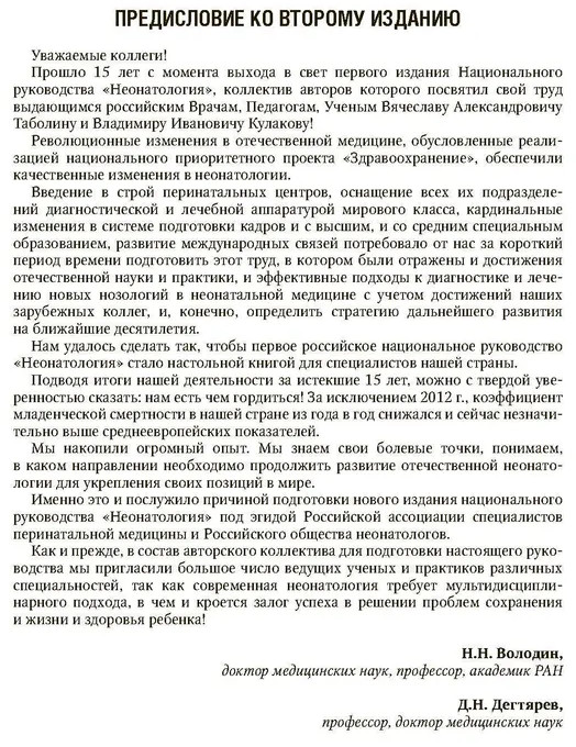 Серия: Национальное руководство Во второе издание национального руководства «Неонатология» включены руководящие принципы диагностики и лечения широкого круга патологических состояний плода и новорожденного, разработанные ведущими отечественными экспертами в области неонатологии и перинатологии. С учетом быстрого развития современных медицинских технологий в данном издании по сравнению с предыдущим обновлено более 75% материала, появились новые разделы и главы.