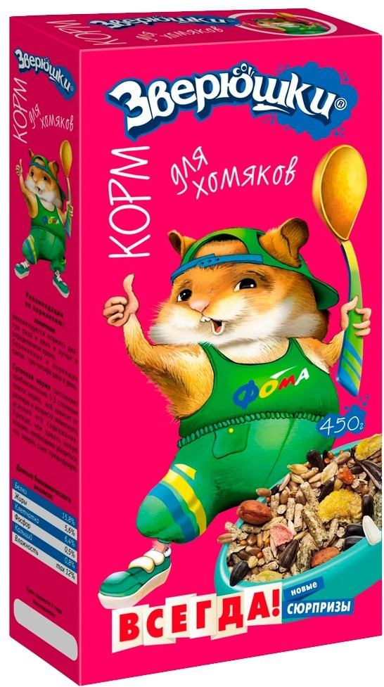 Зверюшки Корм для хомяковВ данный момент этот товар отсутствует в продаже. Возможно, у нас найдется аналогичный или похожий товар здесь. Условия хранения товара: температурный режим от -10 до +25°С. |