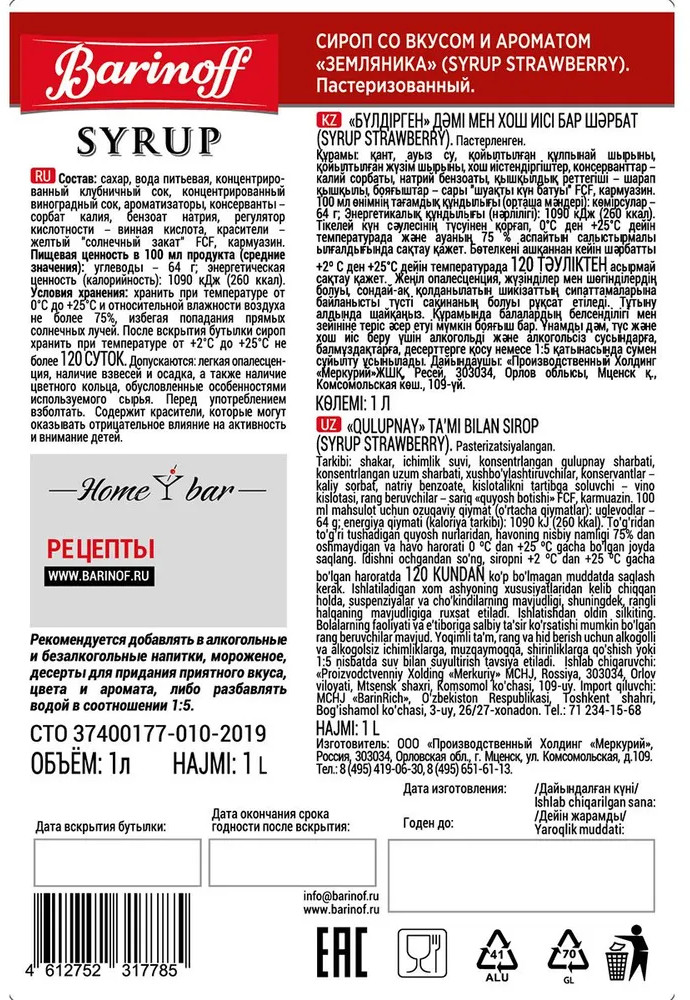 Круто, что появилась возможность заказывать сиропы этой марки. Нам нравится гренадин именно от Баринофф, т.к. он при смешивании с водой получается вкусным и немного сладковатым. От остальных производителей вкус не такой сладкий. Добавляем и в коктейли, и пьем с водой/газировкой, нас все устраивает, берем не первый раз