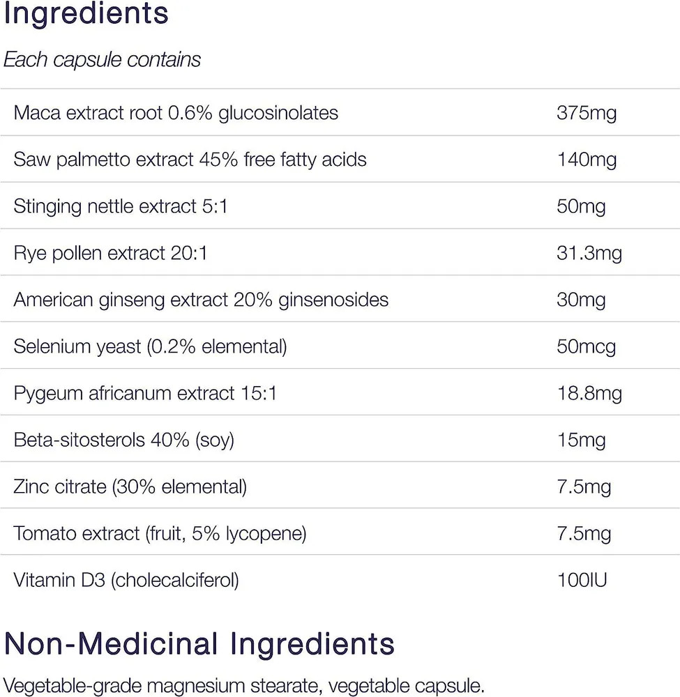 • натуральный состав: экстракты корня маки, пальмы сереноа, крапивы двудомной, американского женьшеня и другие;