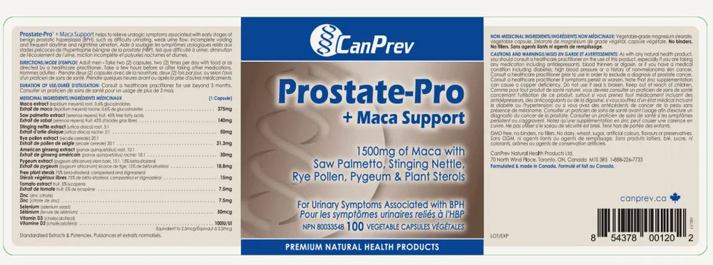 Увеличение простаты или доброкачественная гиперплазия предстательной железы (ДГПЖ) возникает у большинства мужчин с возрастом. Она заключается в увеличении простаты, что создаёт давление на уретру и вызывает проблемы с мочевым пузырем и мочеиспусканием. CanPrev Prostate-Pro Maca Support помогает облегчить урологические симптомы, связанные с ранними стадиями ДГПЖ, включая затрудненное мочеиспускание, слабый поток мочи, неполное мочеиспускание и частое дневное и ночное мочеиспускание. Натуральные ингредиенты Prostate-Pro помогают предотвратить воспаление предстательной железы и улучшить кровообращение, что особенно важно при гиперемии предстательной железы. Рекомендуются к применению в качестве БАД к пище для поддержания здоровья и хорошего самочувствия.
