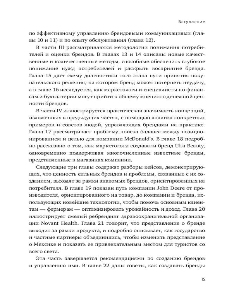 В этой книге собраны все аспекты создания сильного бренда и эффективного управления им. Теоретическая часть дополнена разбором бизнес-кейсов всемирно известных компаний, таких как Google, Apple, McDonald’s, John Deere, Ulta и других. Авторы книги — преподаватели самой известной школы маркетинга и брендинга в США — Келлоггской школы менеджмента.