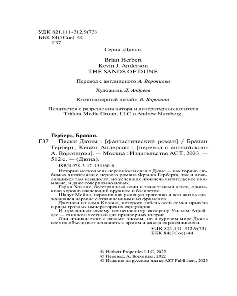 | Пески Дюны Кевин Джей Андерсон, Герберт Брайан