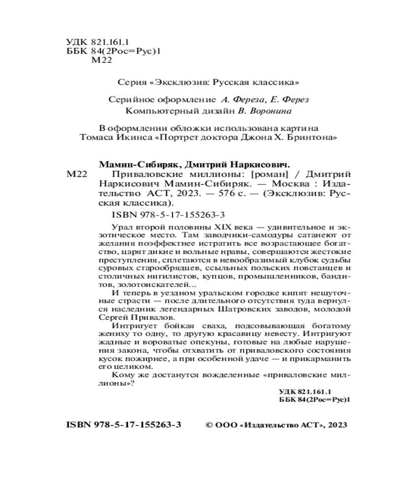 💳 Оплатить за товар можно при получении 🇰🇿 Есть бесплатная доставка по Казахстану от 1 дня 🎁 Копите бонусы с каждой покупки Серия: Эксклюзив: Русская классика Урал второй половины XIX века — удивительное и экзотическое место. Там заводчики-самодуры сатанеют от желания поэффектнее истратить все возрастающее богатство, царят дикие и вольные нравы, совершаются жестокие преступления, сплетаются в невообразимый клубок судьбы суровых старообрядцев, ссыльных польских повстанцев и столичных нигилистов, купцов, промышленников, бандитов, золотоискателей... И теперь в уездном уральском городке кипят нешуточные страсти — после длительного отсутствия туда вернулся наследник легендарных Шатровских заводов, молодой Сергей Привалов. |