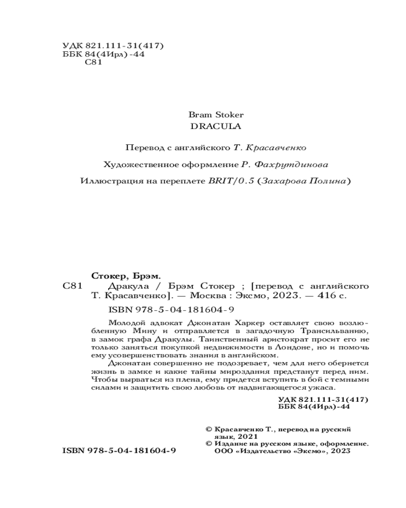 ДракулаВ данный момент этот товар отсутствует в продаже. Возможно, у нас найдется аналогичный или похожий товар здесь. Серия: Young Adult. Легендарные книги Мировой бестселлер в лимитированном оформлении и с закрашенным обрезом! |