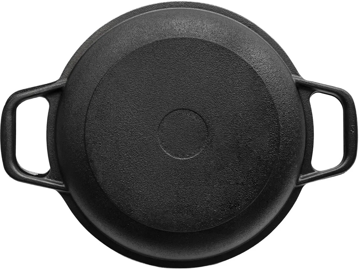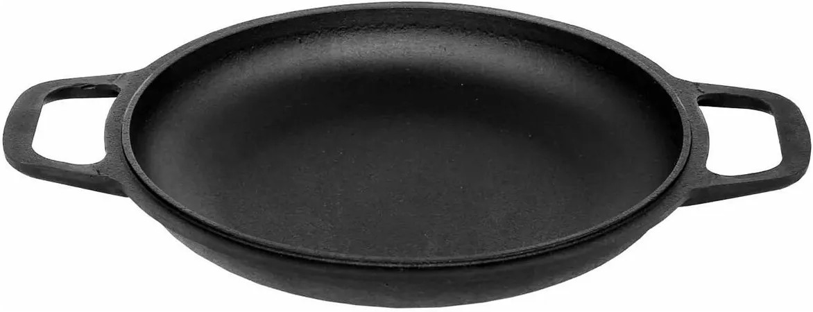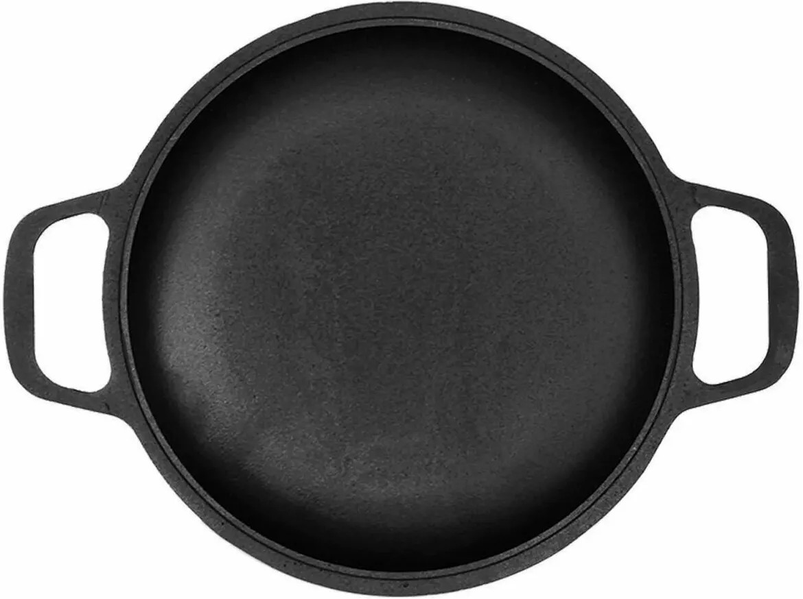 Сковорода чугунная с литыми ручками. На чугунной сковородке для приготовления пищи получаются ароматные и вкусные блюда. Чугунная сковорода долговечна, износостойка, прослужит вам не один десяток лет. Не забывайте, что чугунная посуда для индукционной плиты и других видов плит требует особого ухода и внимания: её необходимо прокаливать и пропитывать маслом, нельзя мыть в посудомоечной машине и долго хранить в ней готовые блюда. Сковорода — полезный подарок на новоселье, свадьбу. Инвентарь для кухни мужчине, посуда для похода папе, другу, любимому — оригинальный подарок на праздник.