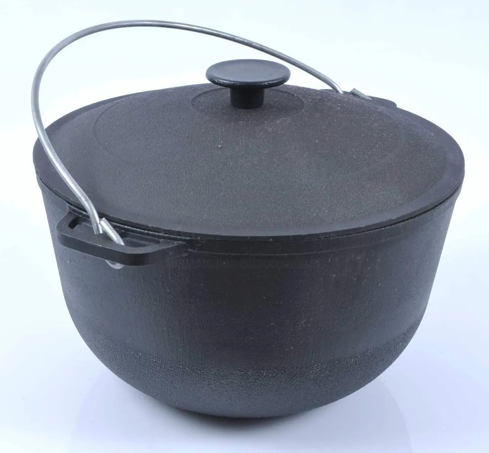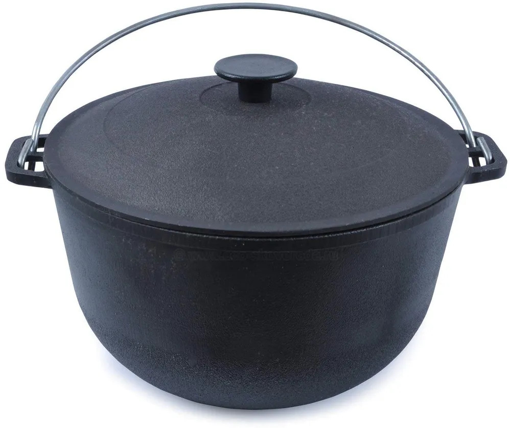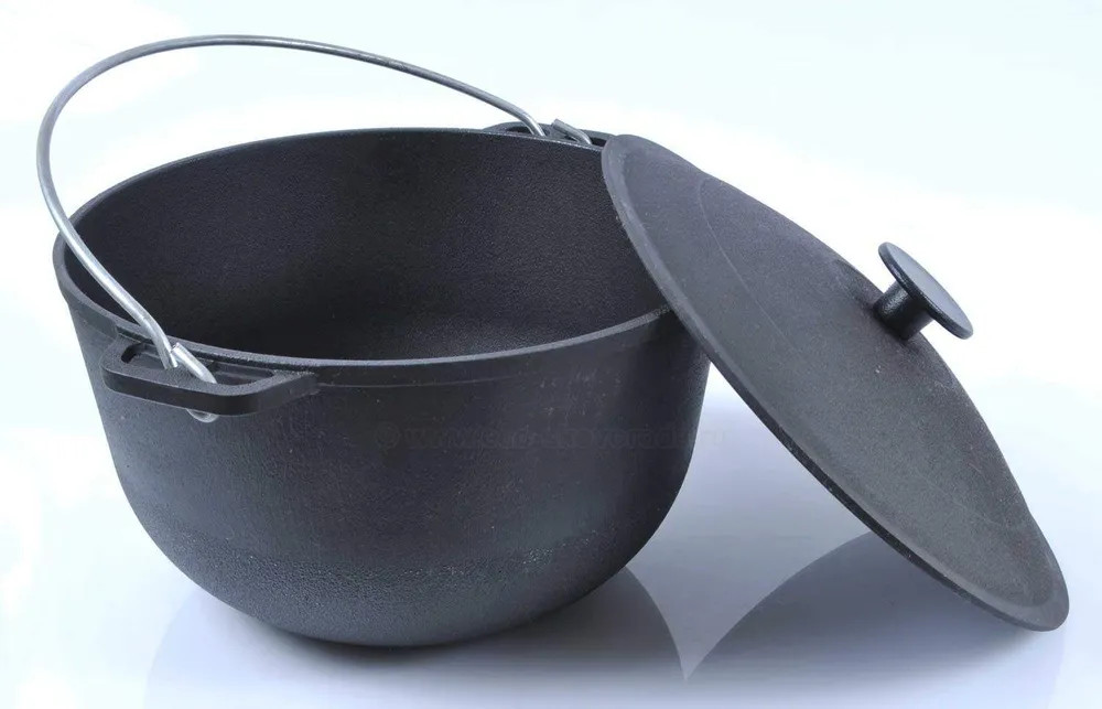 Чугунный казан предназначен для приготовления блюд на костре, требующих тушения, томления и приготовления в собственном соку. Толстые стенки и полусферическое дно аккумулируют тепло по всей поверхности казана, и способствуют равномерному приготовлению пищи. Мясо, плов и другие блюда, приготовленные в казане из чугуна, по-особенному вкусные, сочные и имеют просто невероятный насыщенный аромат. Казан станет незаменимым помощником для большой компании в походе, на даче и отдыхе на природе.
