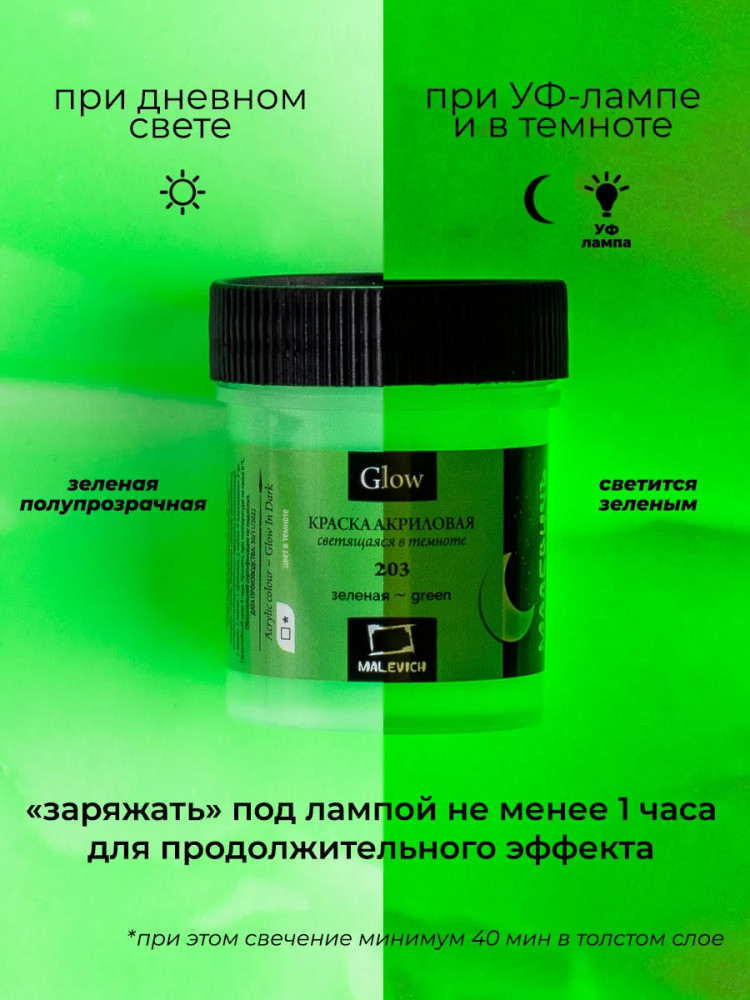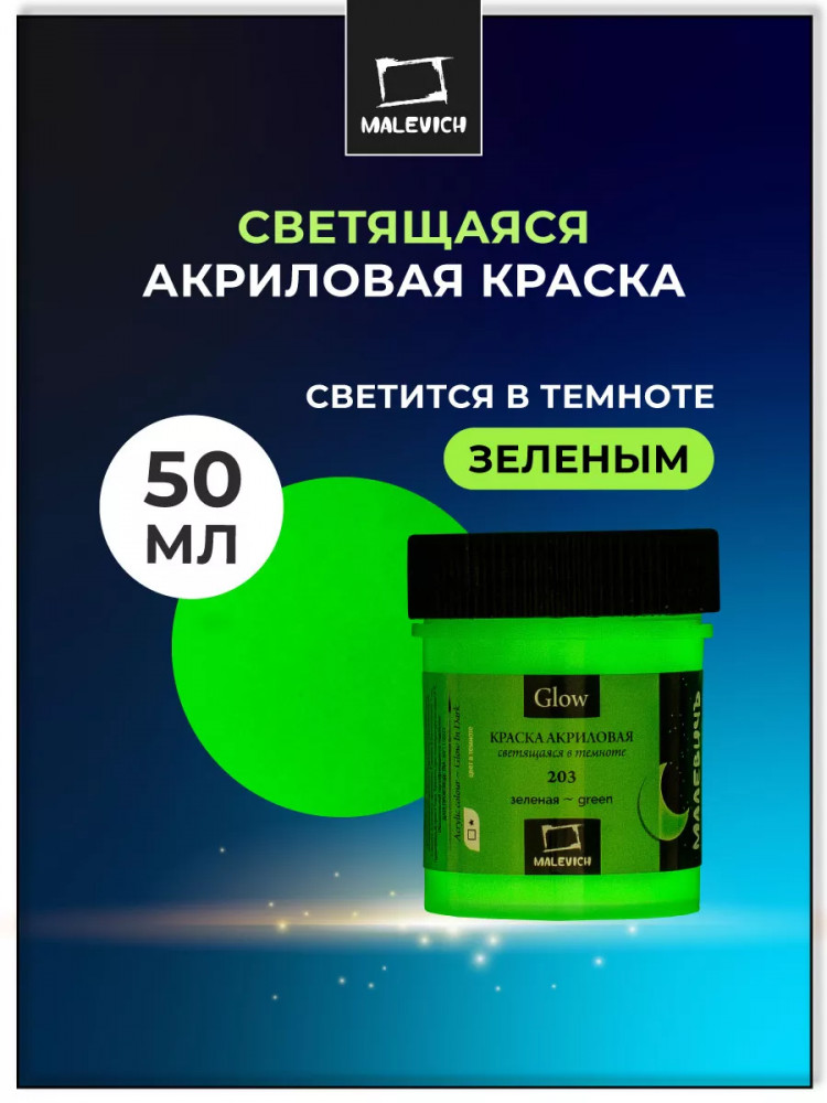 МалевичЪ Краска акриловая люминесцентная, 203 зеленый