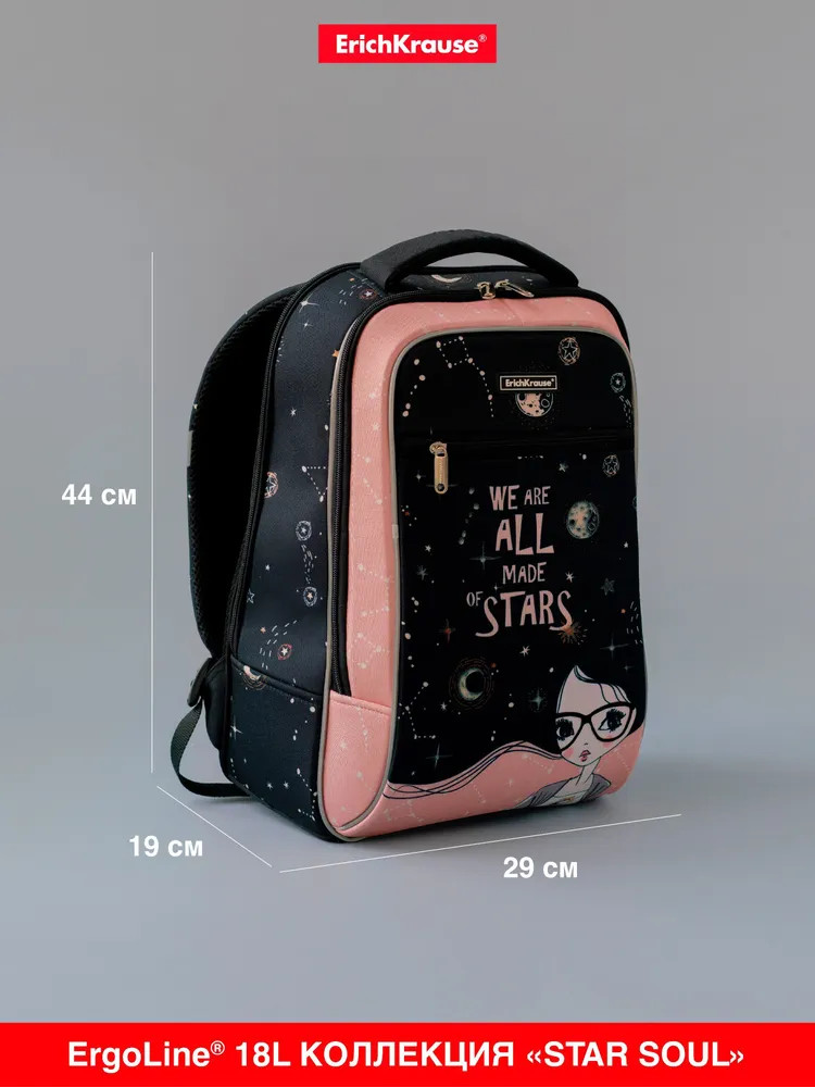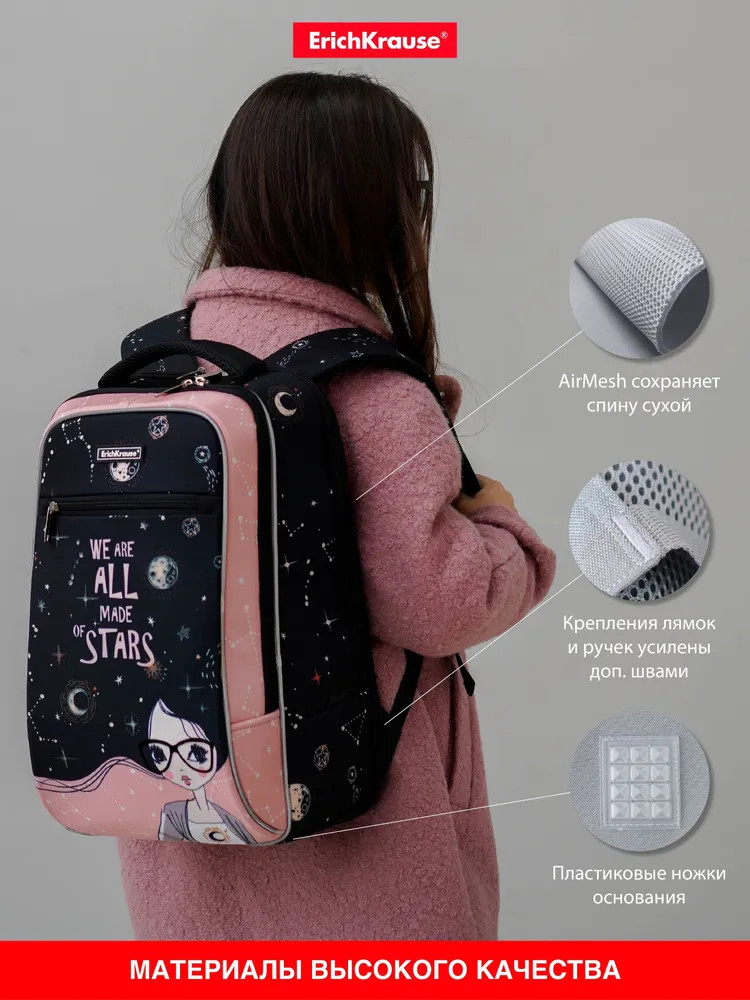 💳 Оплатить за товар можно при получении 🇰🇿 Есть бесплатная доставка по Казахстану от 1 дня 🎁 Копите бонусы с каждой покупки Серия: Star Soul Каркасный рюкзак Urban с эргономичной спинкой. Каркас выполнен из материала EVA — лёгкий, пластичный и гигиеничный вспененный каучук, используемый в производстве ортопедической обуви и спортивных товаров. Объём — 18 литров, весит 540 грамм. Два вместительных отделения на молнии, внутри эластичный фиксатор для тетрадей и учебников формата А4+ и мини-органайзер для канцелярских принадлежностей. Снаружи фронтальный карман на молнии для мелочей. |
