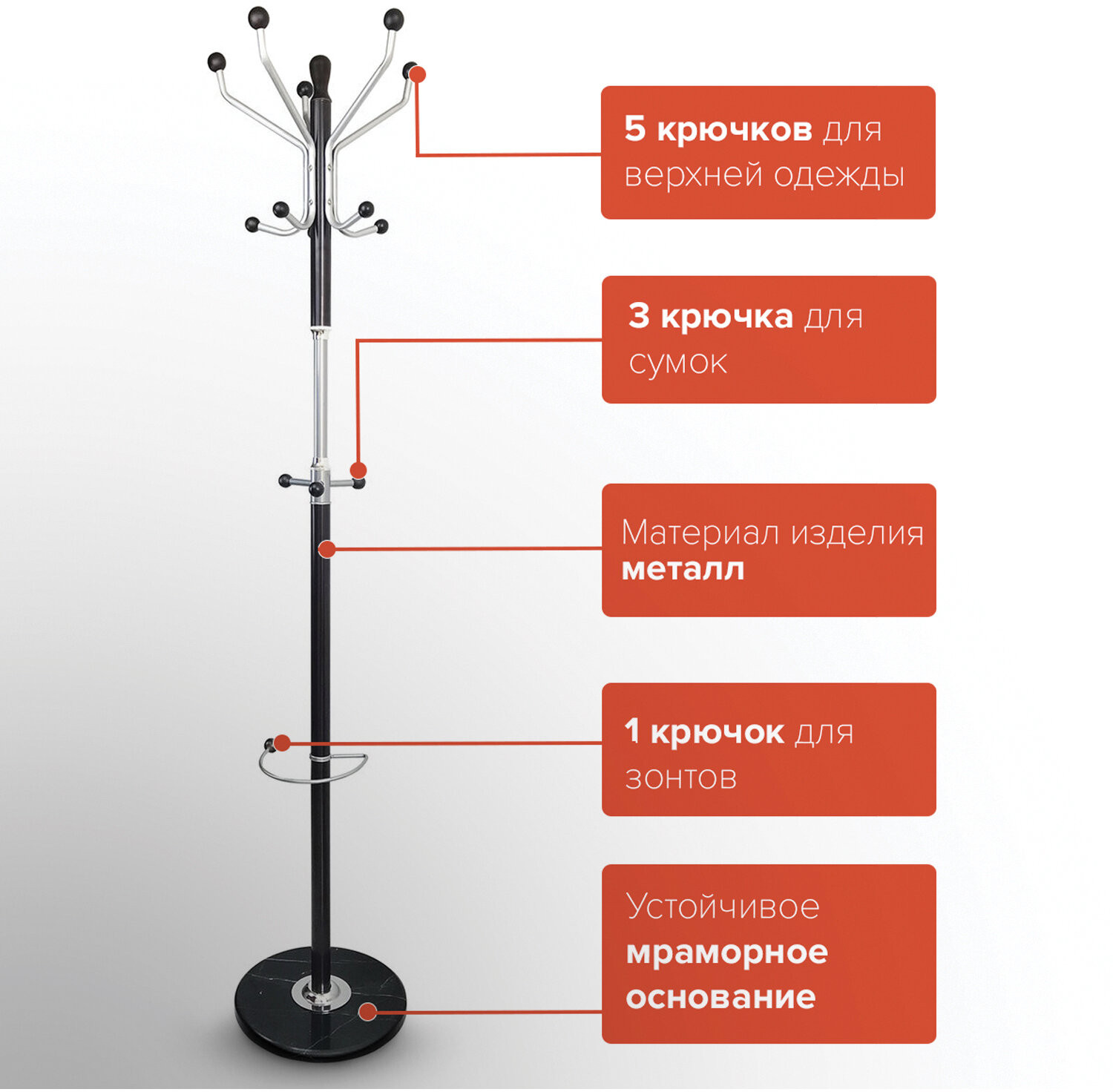 💳 Оплатить за товар можно при получении 🇰🇿 Есть бесплатная доставка по Казахстану от 1 дня 🎁 Копите бонусы с каждой покупки Напольная вешалка-стойка Brabix «CR-870» с прочными металлическими крючками для верхней одежды, головных уборов и зонтов — функциональное решение для хранения вещей в офисе и дома. Оснащена пятью прочными металлическими крючками для головных уборов и верхней одежды, способных выдержать общую нагрузку до 10 кг. Также есть три дополнительных крючка для сумок. Бесспорное преимущество данной модели — основание из натурального мрамора, которое не только делает дизайн каждой вешалки особенным, но обеспечивает высококлассную устойчивость даже при полной нагрузке. Дополнительно вешалка-стойка оснащена крючком для зонтов. Комплект поставляется в разобранном виде. |