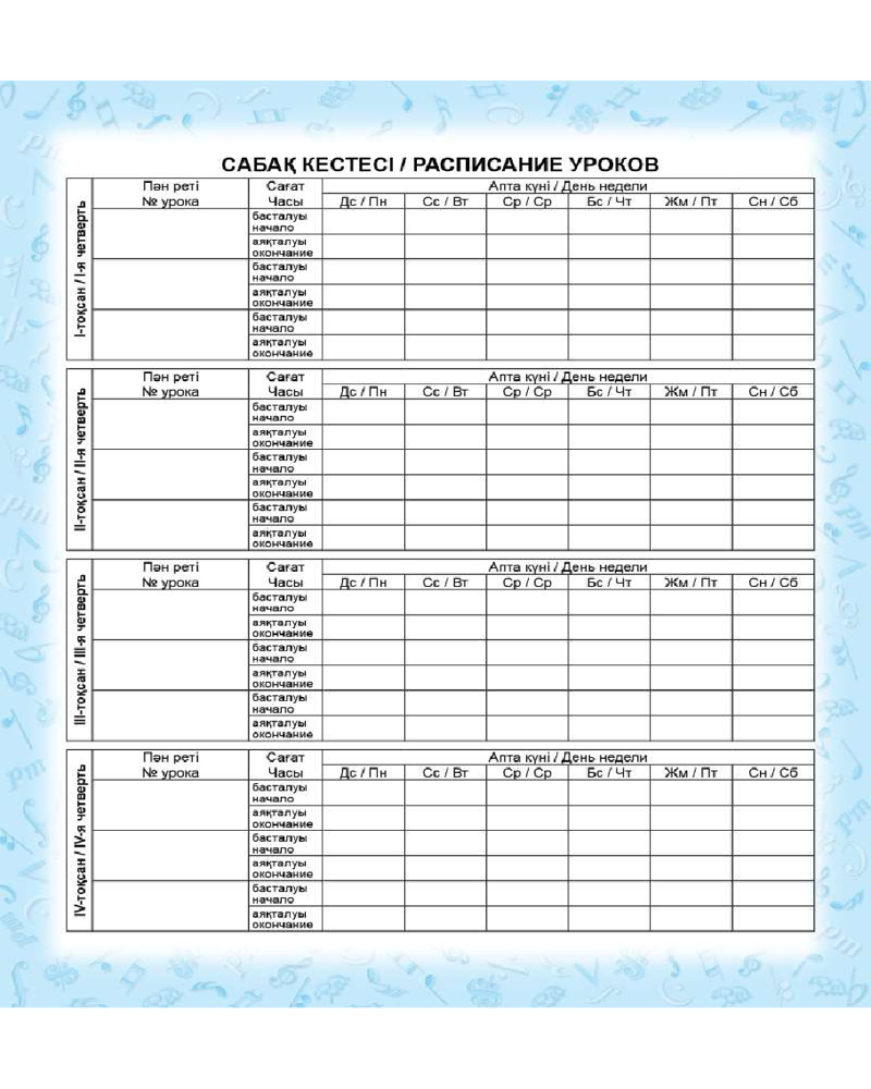 💳 Оплатить за товар можно при получении 🇰🇿 Есть бесплатная доставка по Казахстану от 1 дня 🎁 Копите бонусы с каждой покупки Дневник для музыкальной школы — самый важный и нужный помощник музыканта на протяжении всего учебного года. В нем записывают расписание и домашние задания, фиксируют оценки и замечания, а также подводят итоги года. Но помимо этого дневник дает каждому возможность выразить свою индивидуальность — и в этом его особенность. |