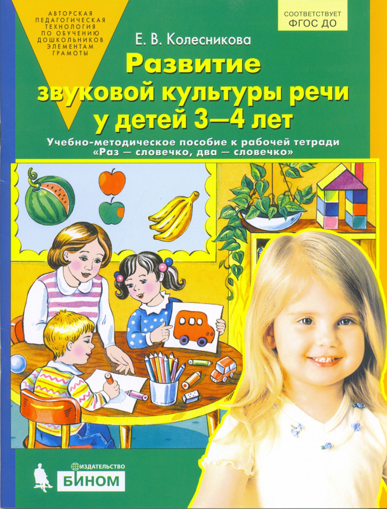 Развитие звуковой культуры речи у детей 3-4 лет: Учебно-методическое пособие к рабочей тетради «Раз — словечко, два — словечко» Изд. 3-е, перераб.Елена Владимировна Колесникова В данный момент этот товар отсутствует в продаже. Возможно, у нас найдется аналогичный или похожий товар здесь. Книга «Развитие звуковой культуры речи у детей 3–4 лет» является 1 — й частью программы «От звука к букве. Обучение дошкольников элементам грамоты». (2-я часть — «Развитие фонематического слуха у детей 4–5 лет»; 3-я часть — «Развитие звуко-буквенного анализа у детей 5–6 лет»; 4-я часть — "Развитие интереса и способностей к чтению у детей 6–7 лет".) |