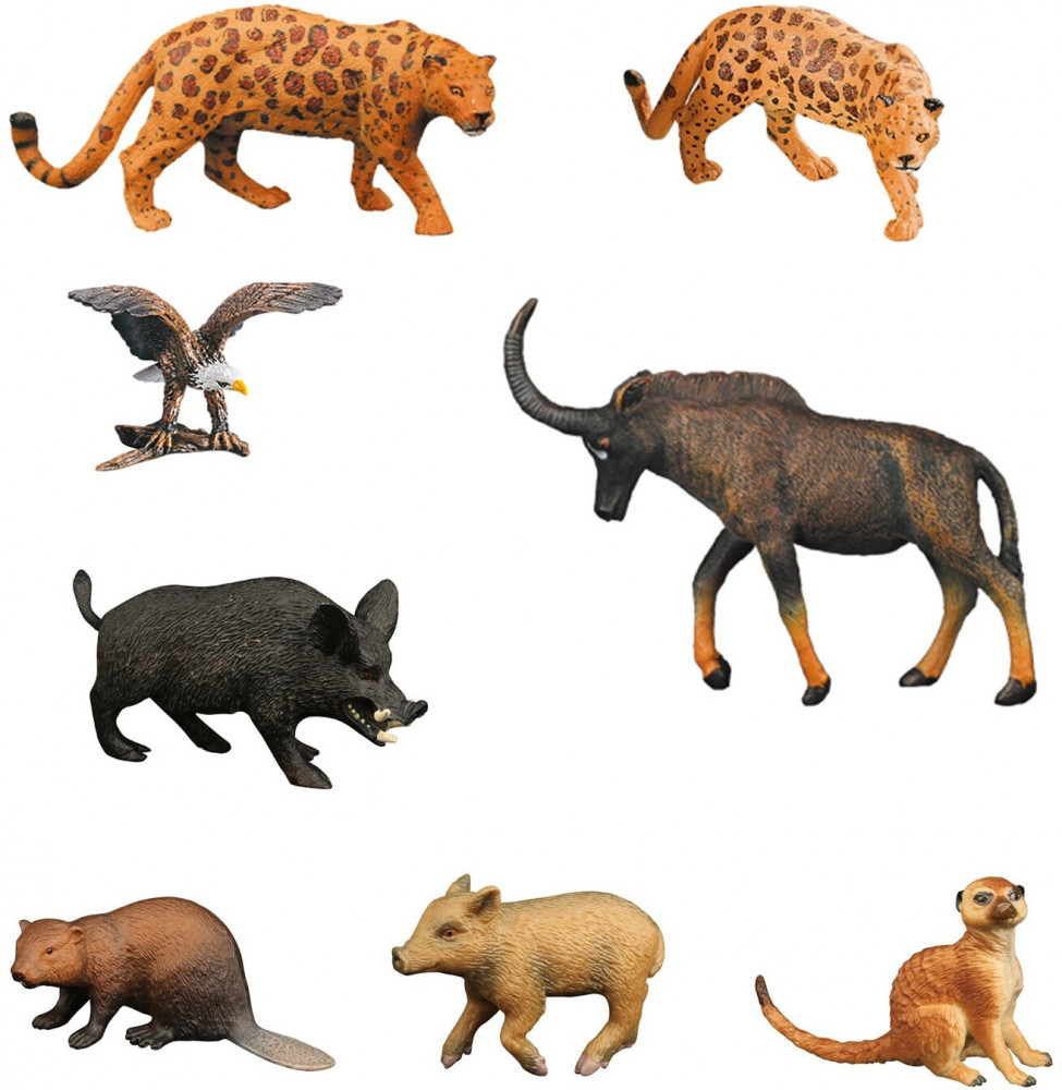 Серия: Мир диких животных В игровом наборе «Дикие животные» — фигурки орла, двух ягуаров, антилопы, суриката, бобра, двух кабанов являются уменьшенными копиями реальных животных. Они максимально похожи на настоящих животных. Такие фигурки приятно дарить и получать в подарок. |