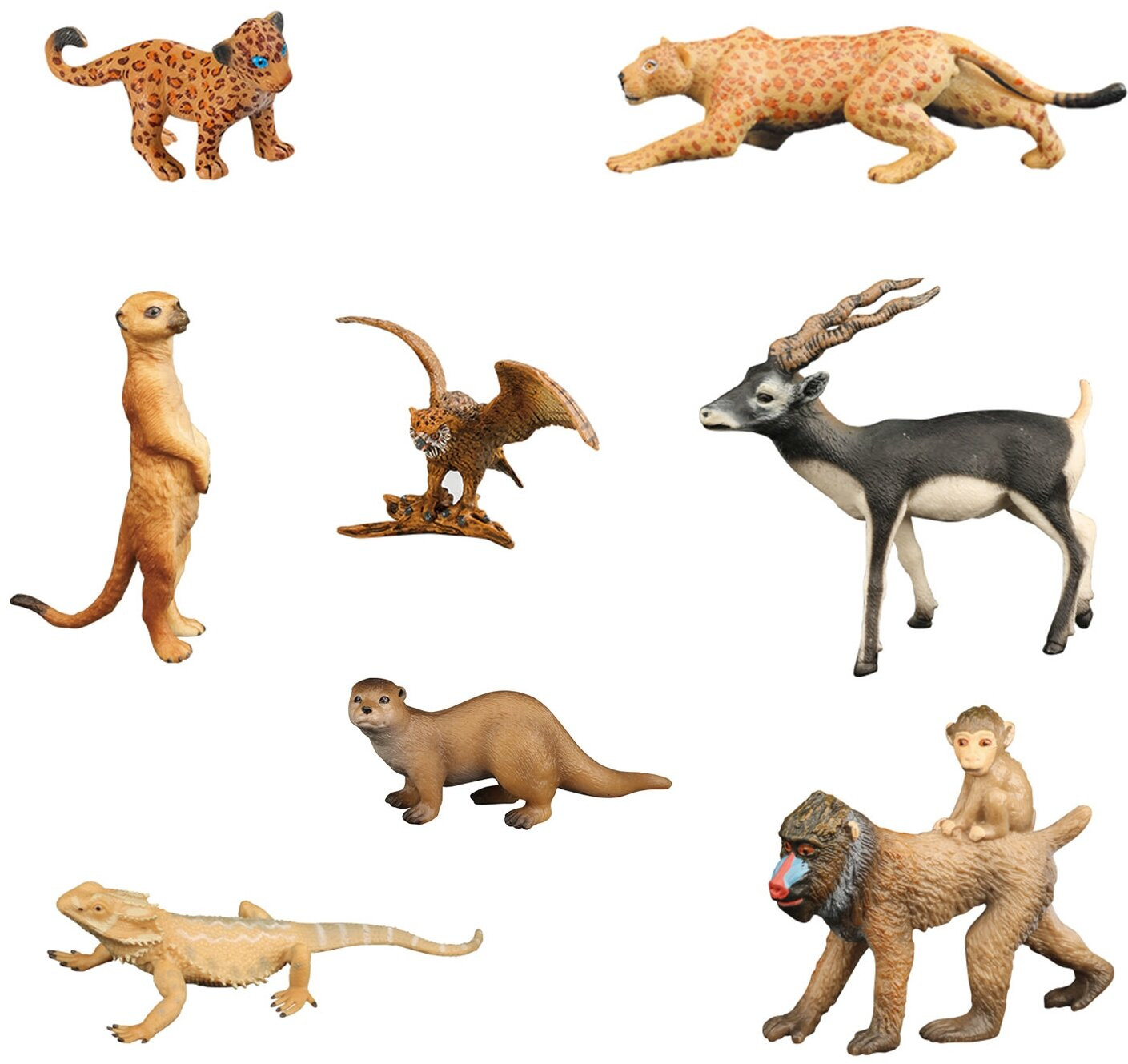 Серия: Мир диких животных В игровом наборе «Дикие животные» — фигурки сокола, суриката, норки, обезьяны, ящерицы, антилопы, двух леопардов являются уменьшенными копиями реальных животных. Они максимально похожи на настоящих животных. Такие фигурки приятно дарить и получать в подарок. |