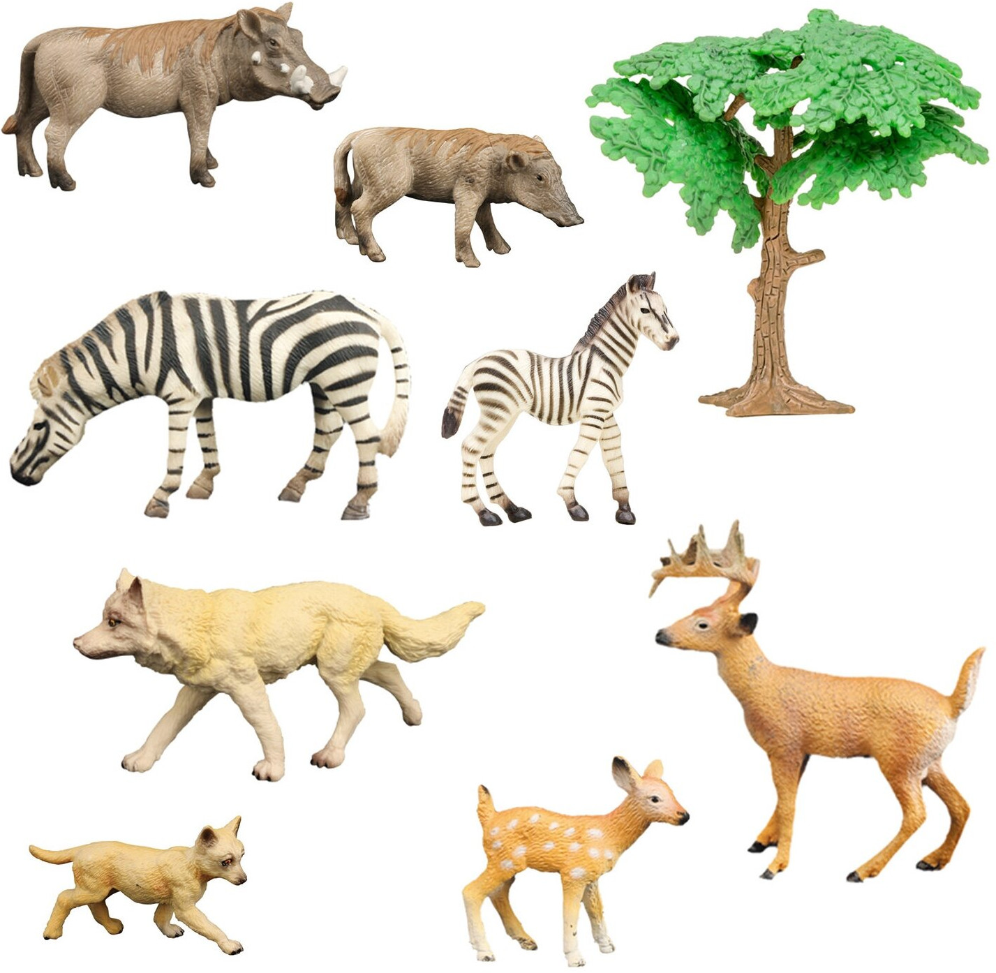 💳 Оплатить за товар можно при получении 🇰🇿 Есть бесплатная доставка по Казахстану от 1 дня 🎁 Копите бонусы с каждой покупки Серия: Мир диких животных В игровом наборе «Дикие животные» — фигурки двух зебр, двух бородавочников, двух оленей, двух волков являются уменьшенными копиями реальных животных. Они максимально похожи на настоящих животных. Такие фигурки приятно дарить и получать в подарок. |