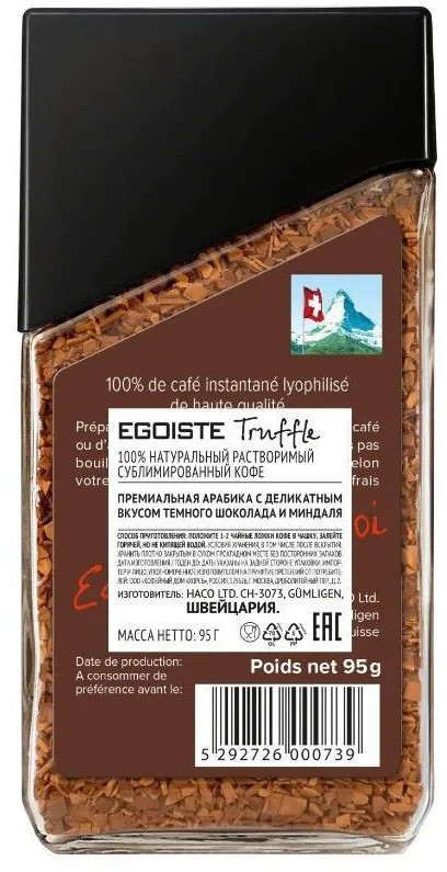 Egoiste Кофе растворимый «Truffle»+201 вкусный необычный вкус не кислит средняя крепость нет трюфеля