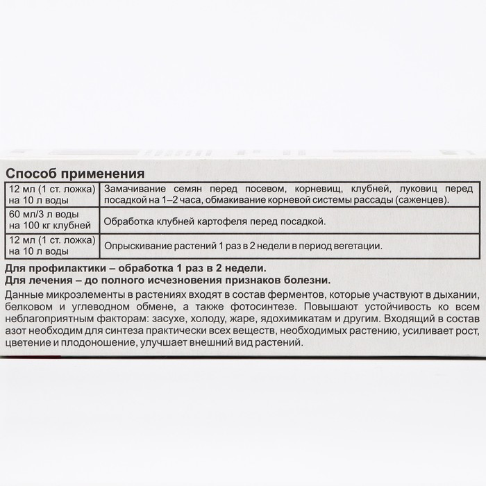 БашИнком Удобрение «9 элементов»В данный момент этот товар отсутствует в продаже. Возможно, у нас найдется аналогичный или похожий товар здесь. Микроудобрение для обогащения урожая микроэлементами, профилактики и лечения всех видов хлорозов, вызванных дефицитом элементов питания у плодово-ягодных, овощных, декоративных, полевых культур и винограда. Экономичен — флакона хватает на 80 л рабочего раствора на 2 сотки при четырехкратном опрыскивании растений. Полностью безопасен — не имеет срока ожидания. Подходит для стимуляции семян при замачивании перед посевом. |