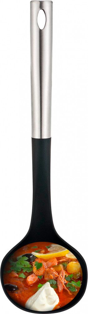 Grans ПоловникВ данный момент этот товар отсутствует в продаже. Возможно, у нас найдется аналогичный или похожий товар здесь. Многофункциональный кухонный нейлоновый половник удобен в перемешивании разливании супа соуса компота бульона варенья. Половник для кухни из нейлона выдерживает температуру до 180 градусов. Легкий материал кулинарного половника удобен в готовке блюд в казане кастрюле мультиварке на природе пикнике дома в гостях. Черный цвет половника органично впишется в интерьер. Используйте отверстие на ручке повесьте предмет в нужном месте, данный половник является подвесным. |