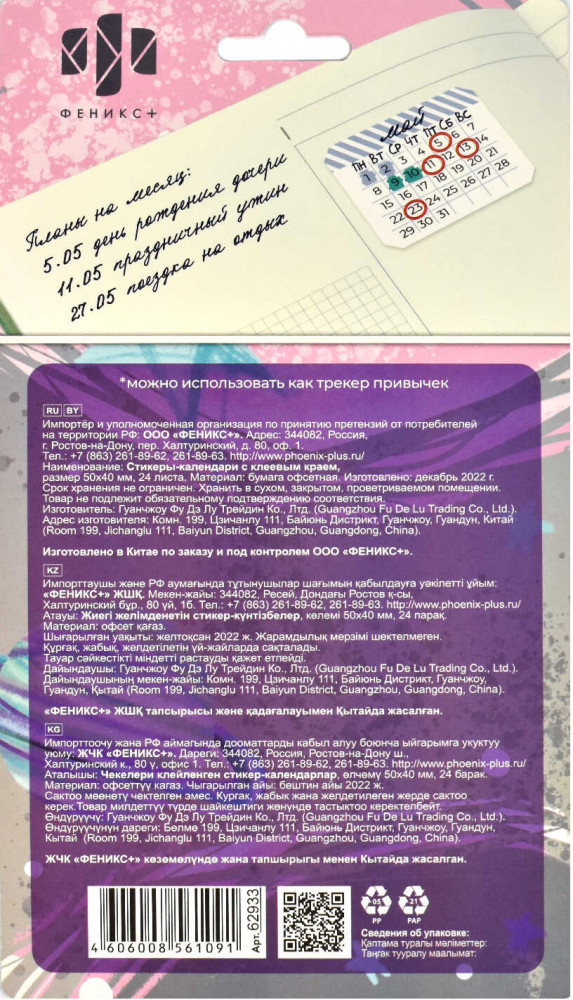 Феникс + Набор стикеров-календарей+14 красивые размер милые цена начало недели