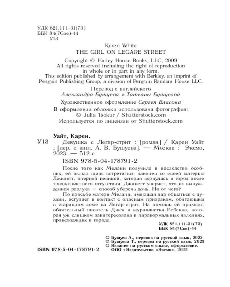 Девушка с Легар-стритВ данный момент этот товар отсутствует в продаже. Возможно, у нас найдется аналогичный или похожий товар здесь. Серия: Зарубежный романтический бестселлер. Романы Сары Джио и Карен Уайт (обложка) После того как Мелани получила в наследство особняк, ей выпал шанс встретиться наконец со своей матерью Джинетт, оперной певицей, которая вернулась в город после тридцатилетнего отсутствия. Джинетт уверяет, что их вынужденная разлука — способ уберечь дочь. Но от чего? По просьбе матери, Мелани, имеющая дар общаться с духами, вступает в контакт с опасным призраком, обитающим в старинном доме на Легар-стрит. На помощь ей приходят обаятельный писатель Джек и журналистка Ребекка, которая уж слишком заинтересована в паранормальных явлениях, происходящих в городе. |