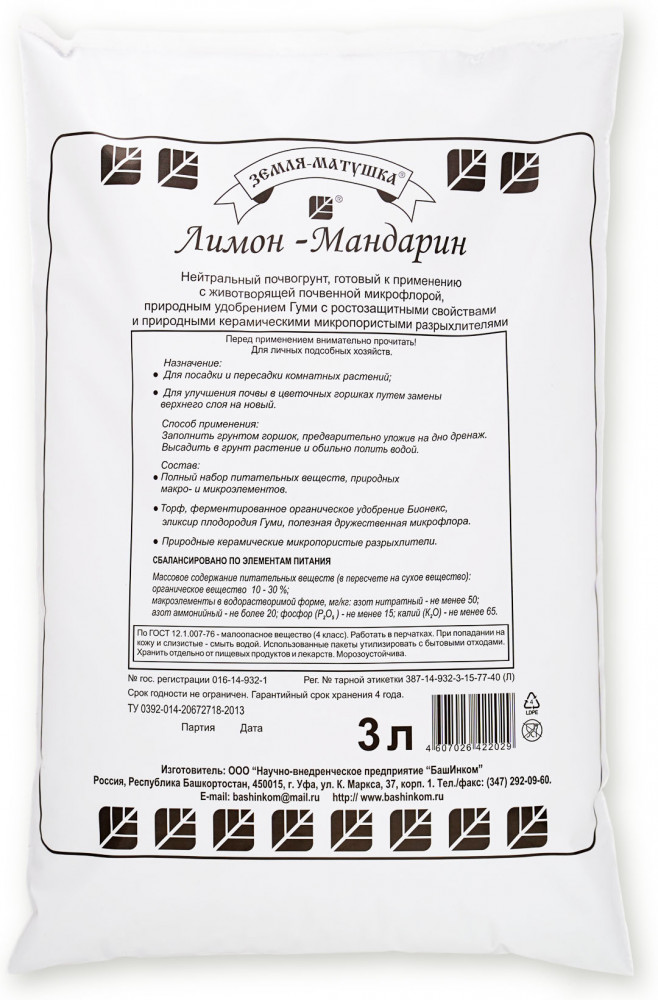 Земля-Матушка Грунт для цитрусовыхВ данный момент этот товар отсутствует в продаже. Возможно, у нас найдется аналогичный или похожий товар здесь. Полностью готовый почвогрунт, состав которого наилучшим образом сбалансирован для посадки и пересадки лимона, мандарина, жасмина, инжира, кофе. Черноземные почвогрунты «Земля Матушка» оздоровлены природными биопрепаратами фитоспорин и гуми, полезной почвенной микрофлорой; сбалансированы по элементам питания и микроэлементам; обогащены природным гумусным удобрением и природными легкими керамическими разрыхлителями, которые делают почву структурной, высокоплодородной и воздушной. |